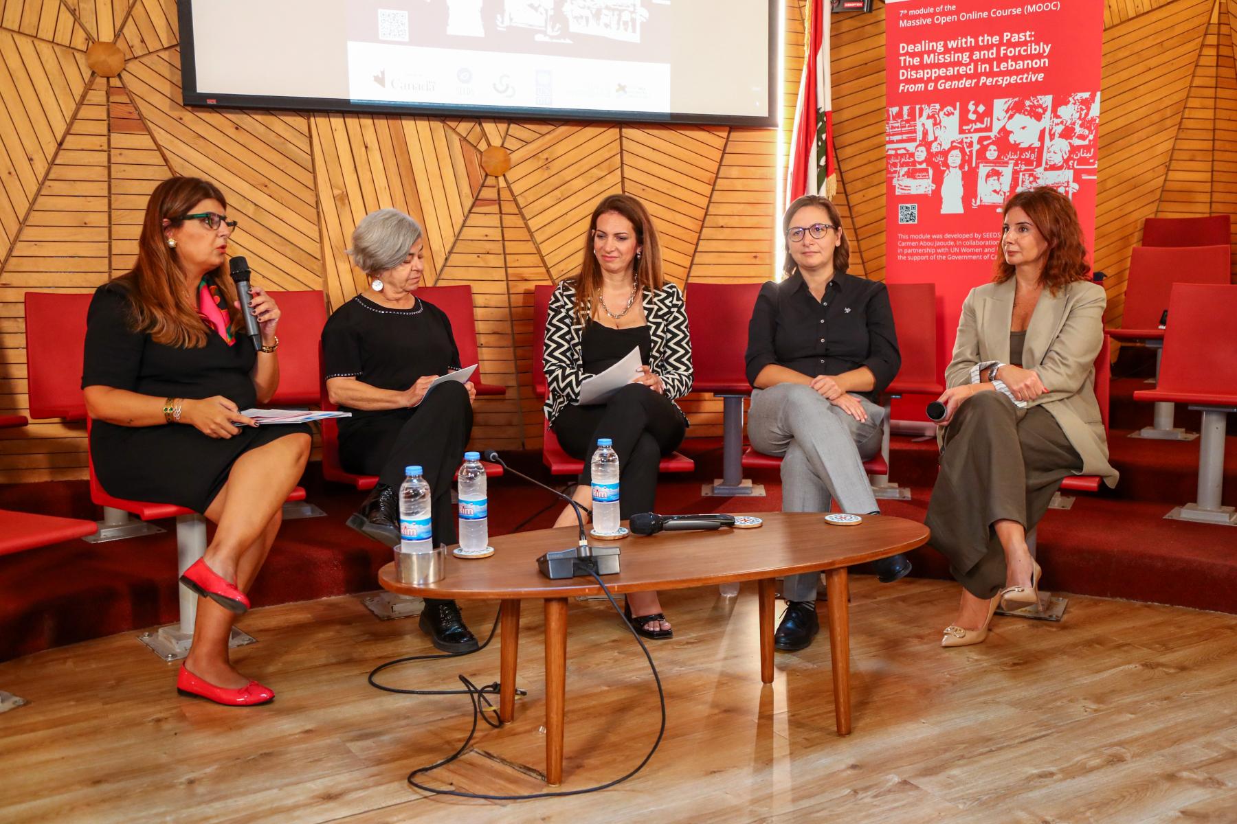 Speakers included Wadad Halawani (President of the Committee of the Families of the Kidnapped and Disappeared in Lebanon), Lawyer Layal Sakr (Founder and Executive Director of Seeds for Legal Initiatives), Reina Sfeir (Professor of International Human Rights Law and Member of the National Commission for the Missing and Forcibly Disappeared), and Lyn Eid (Human Rights Officer at the Office of the High Commissioner for Human Rights in Lebanon).